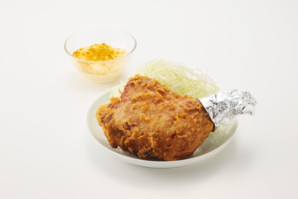 ザクザク衣と肉汁あふれるもも肉が魅力の骨付き唐揚げ。